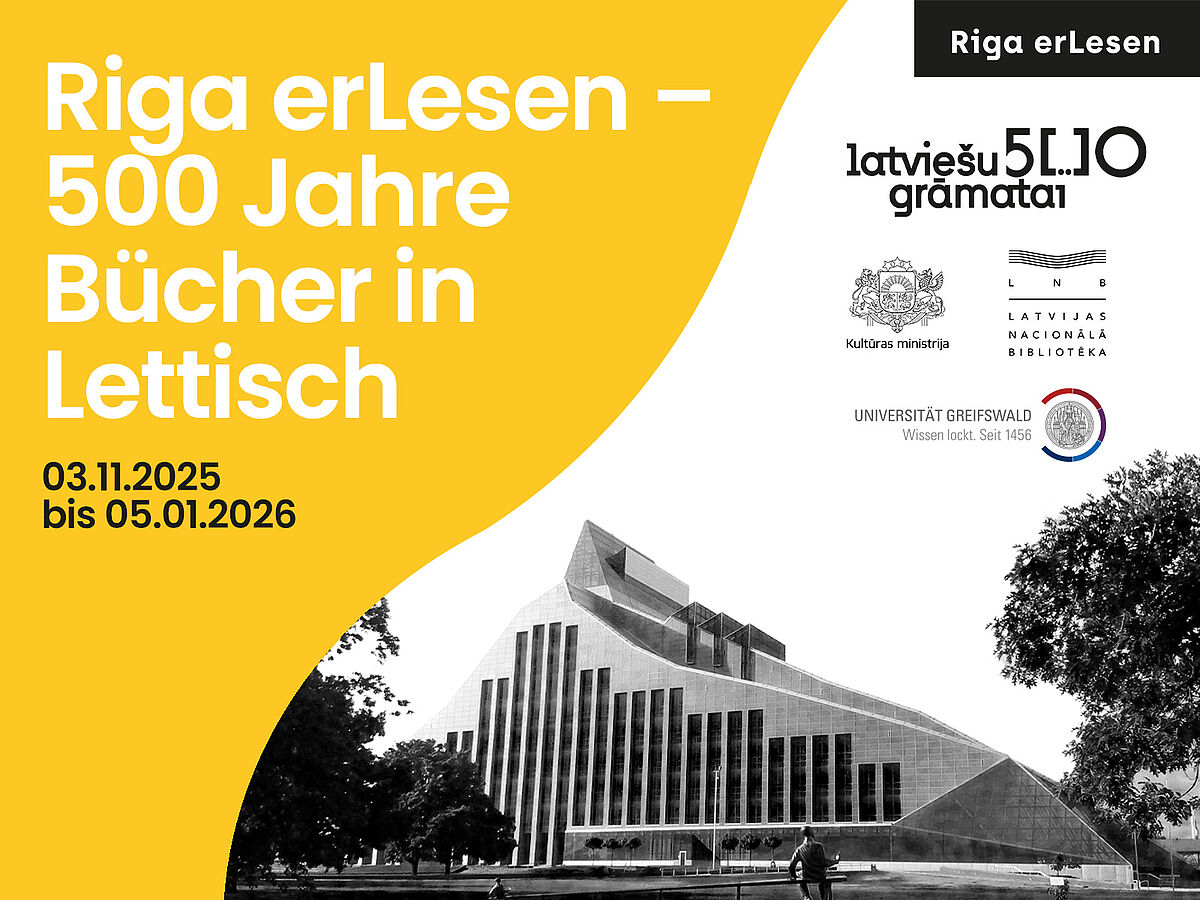 In einem standortspezifischen Poster lernen Sie mehr über die Parallelen zwischen Riga und Greifswald sowie über den „Alten Stender“ und seine Werke im Bestand der Universitätsbibliothek.