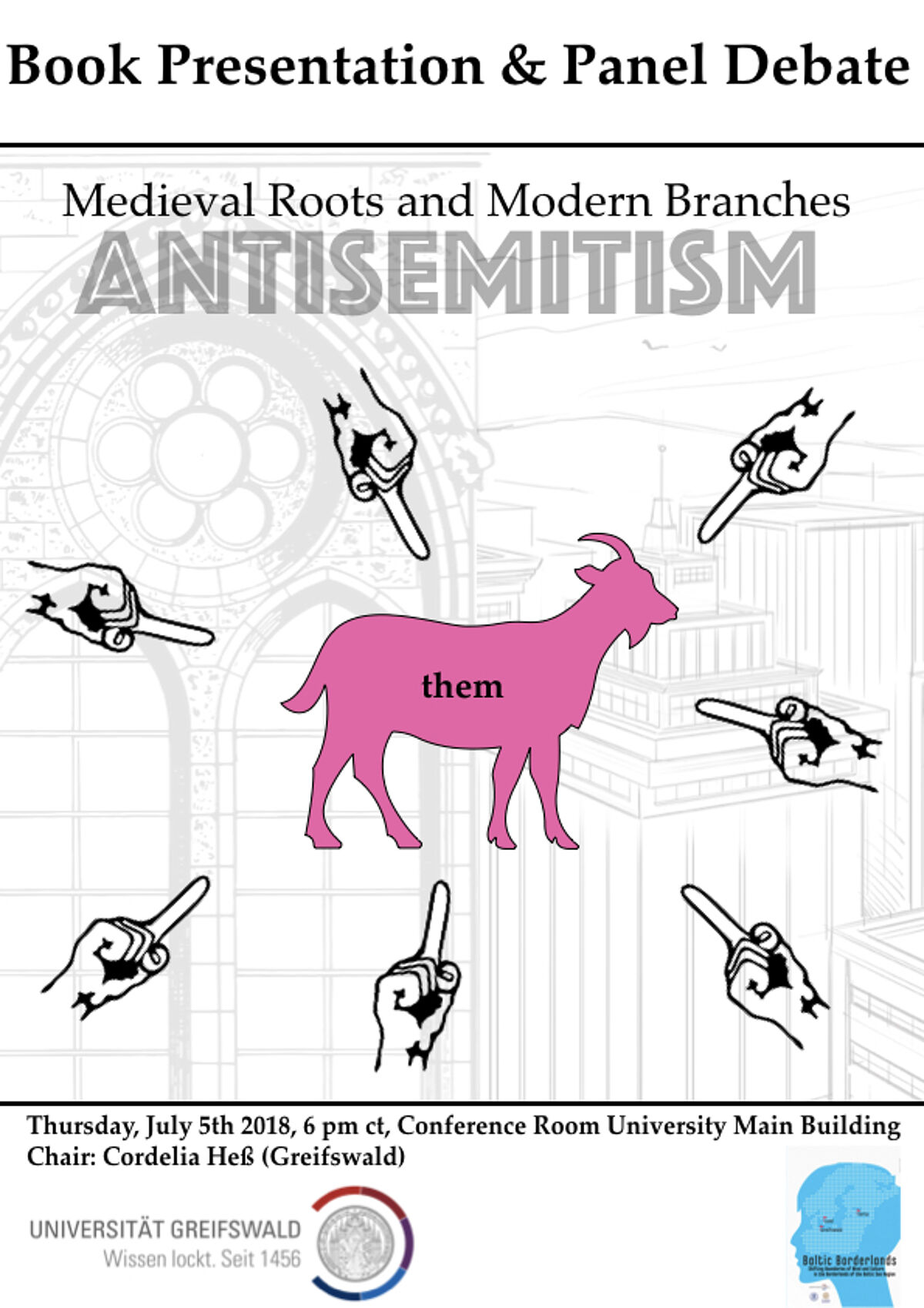 The anthology “The Medieval Roots of Antisemitism” (Routledge 2018) takes a fresh approach at these questions. In the panel debate, three of the contributors will present their viewpoint: Jonathan Adams (Göteborg/Copenhagen), who has studied the representations of Jews in the medieval North; Ulrich Wyrwa (Berlin/Potsdam), whose focus is on the radicalization of antisemitism in the 19th and early 20th century; and Brian Klug (Oxford), who has coined the term “new antisemitism” for anti-Jewish stereotypes in connection with the state of Israel. An event organized by the RTG Baltic Borderlands and the Chair of Nordic History.