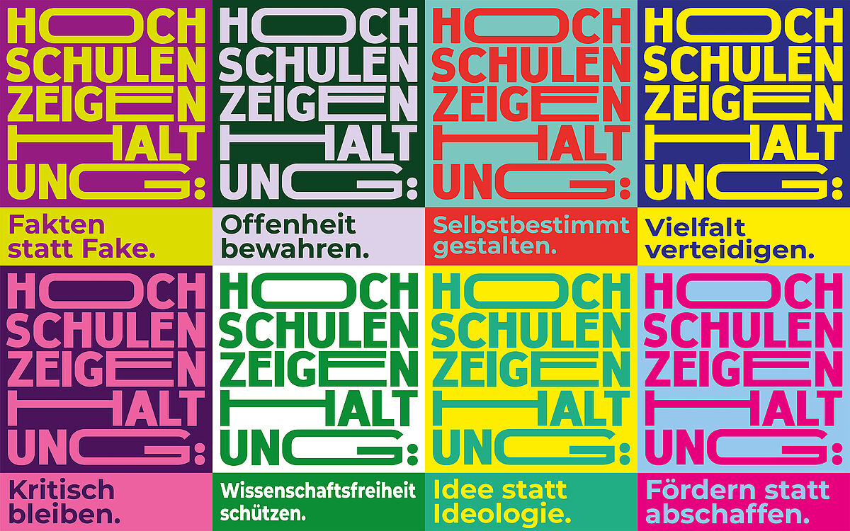 Mit der Kampagne wollen wir gemeinsam mit vielen anderen Hochschulen in Deutschland Haltung zeigen für eine offene, solidarische und freie Wissenschafts- und Hochschulkultur und auf die bereits bestehenden antidemokratischen Einflussnahmen und Angriffe, denen Akteur:innen an Hochschulen ausgesetzt sind, hinweisen.