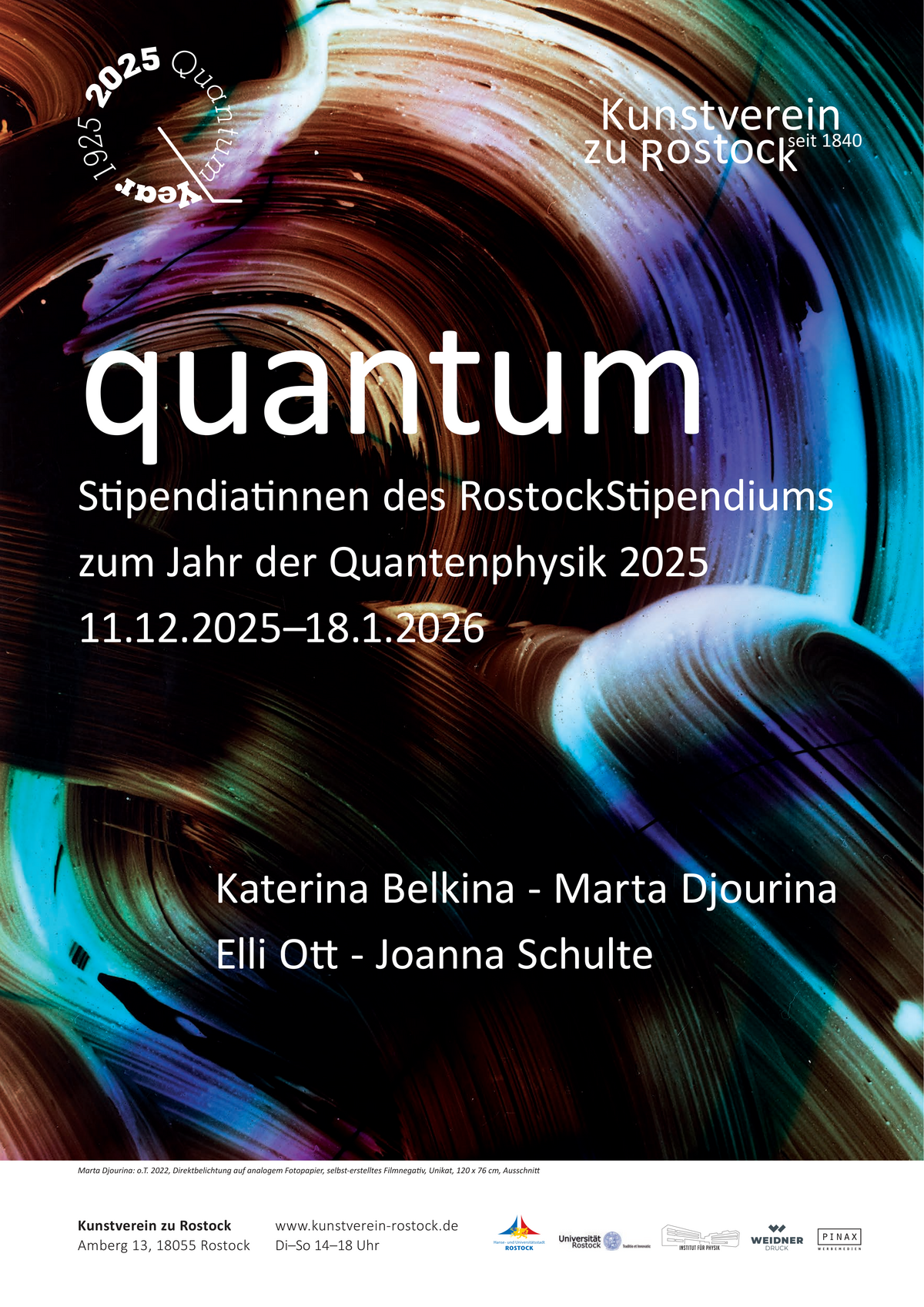 Im Jahr 2025 haben die Vereinten Nationen das Internationale Jahr der Quantenwissenschaft und -technologie ausgerufen. Als Teil dieses globalen Events widmet sich das Institut für Physik der Universität Rostock der faszinierenden Schnittstelle zwischen Kunst und Wissenschaft. Bereits seit Jahren arbeitet das Institut für Physik mit dem Kunstverein zu Rostock erfolgreich an Projekten, die Licht und Quantenphysik thematisieren.