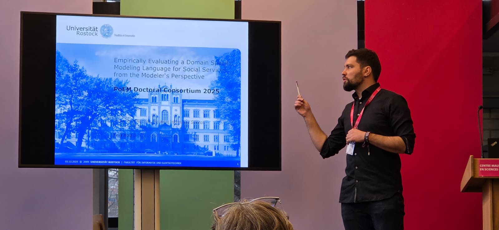 Im PoEM Forum präsentierten Nikola Ivanovic das Papier “Method Design for Development of Reusable AI Building Blocks” und Ahmed Dehne das Papier “Toward a Unified Variability Language: Integrating Feature-Model into the ArchiMate Metamodel”. Weiterhin präsentierte Anne Gutschmidt das Papier “Digital Tool Support for Co-Located Participatory Enterprise Modeling” im Business Case & Tool Forum.