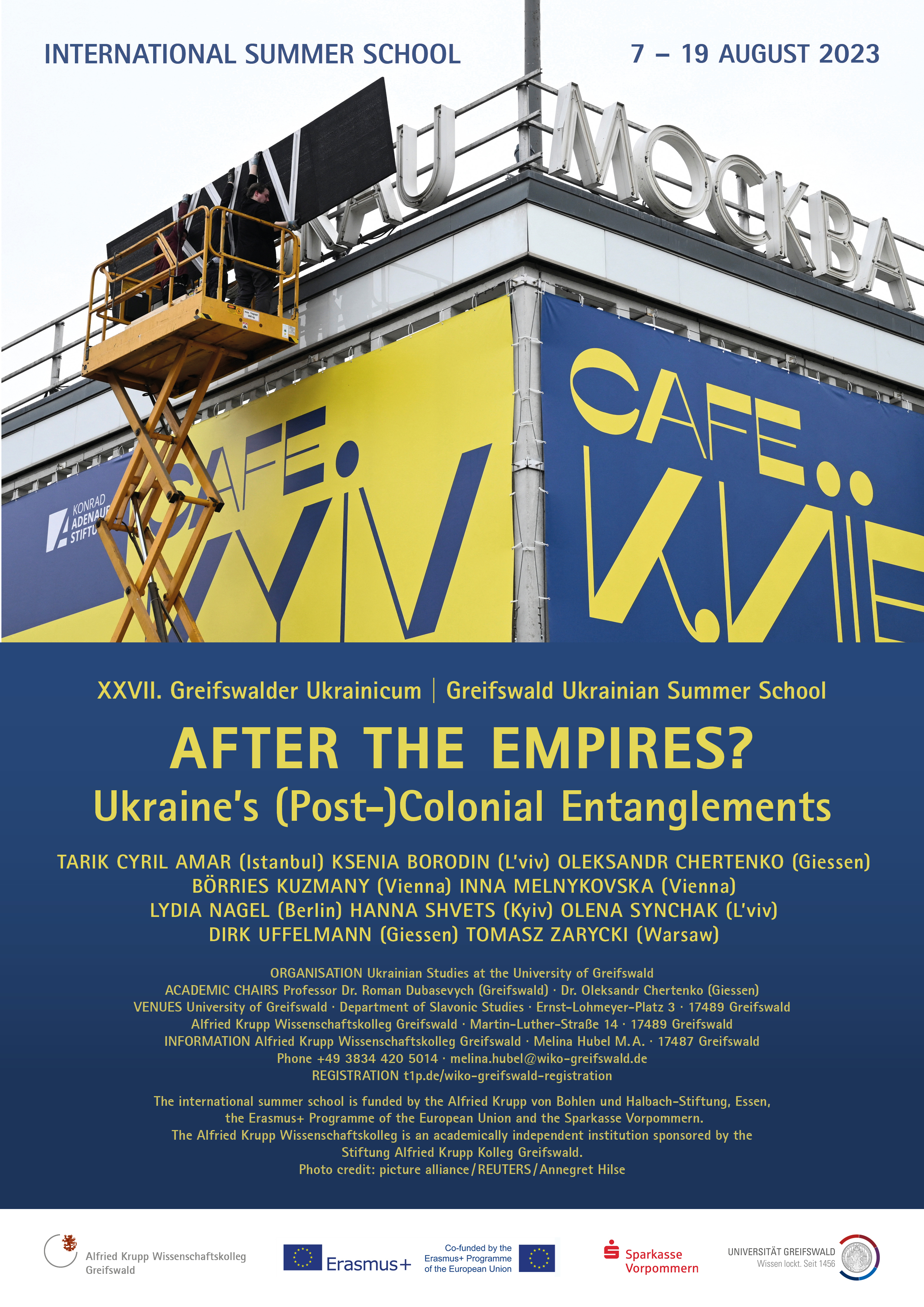 - Die Keynote des Greifswalder Ukrainicums zum Thema „Postkoloniale Perspektiven auf Osteuropa: Ambivalenzen und Vereinfachungen“ hält Prof. Dr. Dirk Uffelmann (Justus-Liebig-Universität Gießen).