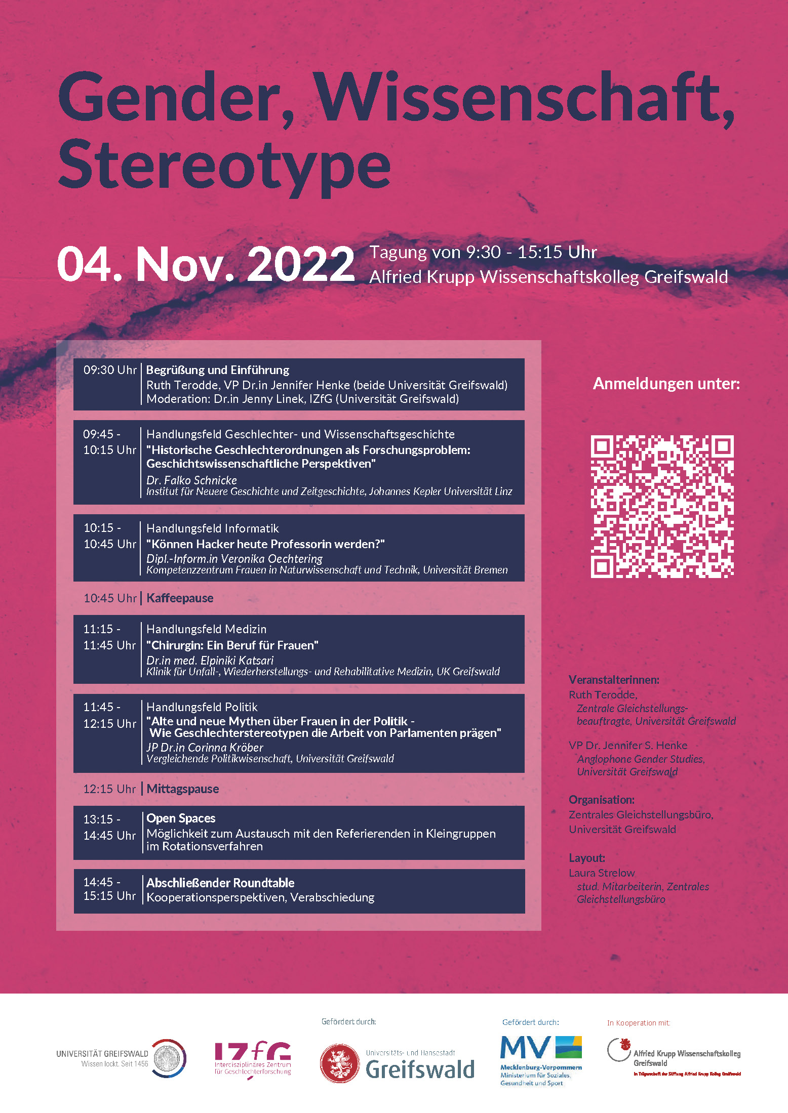 Was sind Geschlechterstereotype? Wie wirken sie sich auf den eigenen Forschungsgegenstand aus? Welche Implikationen haben gender stereotypes auch für den Alltag als Forschende, Lehrende und Studierende? Wie unterschiedliche Disziplinen mit Blick auf gender stereotypes voneinander lernen können, soll im Fokus des Workshops „Gender, Wissenschaft und Stereotype“ stehen. Ziel ist es nicht nur, zum Brückenschlag zwischen den Wissenschaften beizutragen. Ebenso sollen Teilnehmende die Gelegenheit erhalten, mit den Gästen in den Dialog zu treten, um frühzeitig geschlechterspezifische Herausforderungen in Forschung, Lehre und Studium sowie mögliche Handlungsoptionen diskutieren zu können. Alle Interessierten sind herzlich eingeladen!