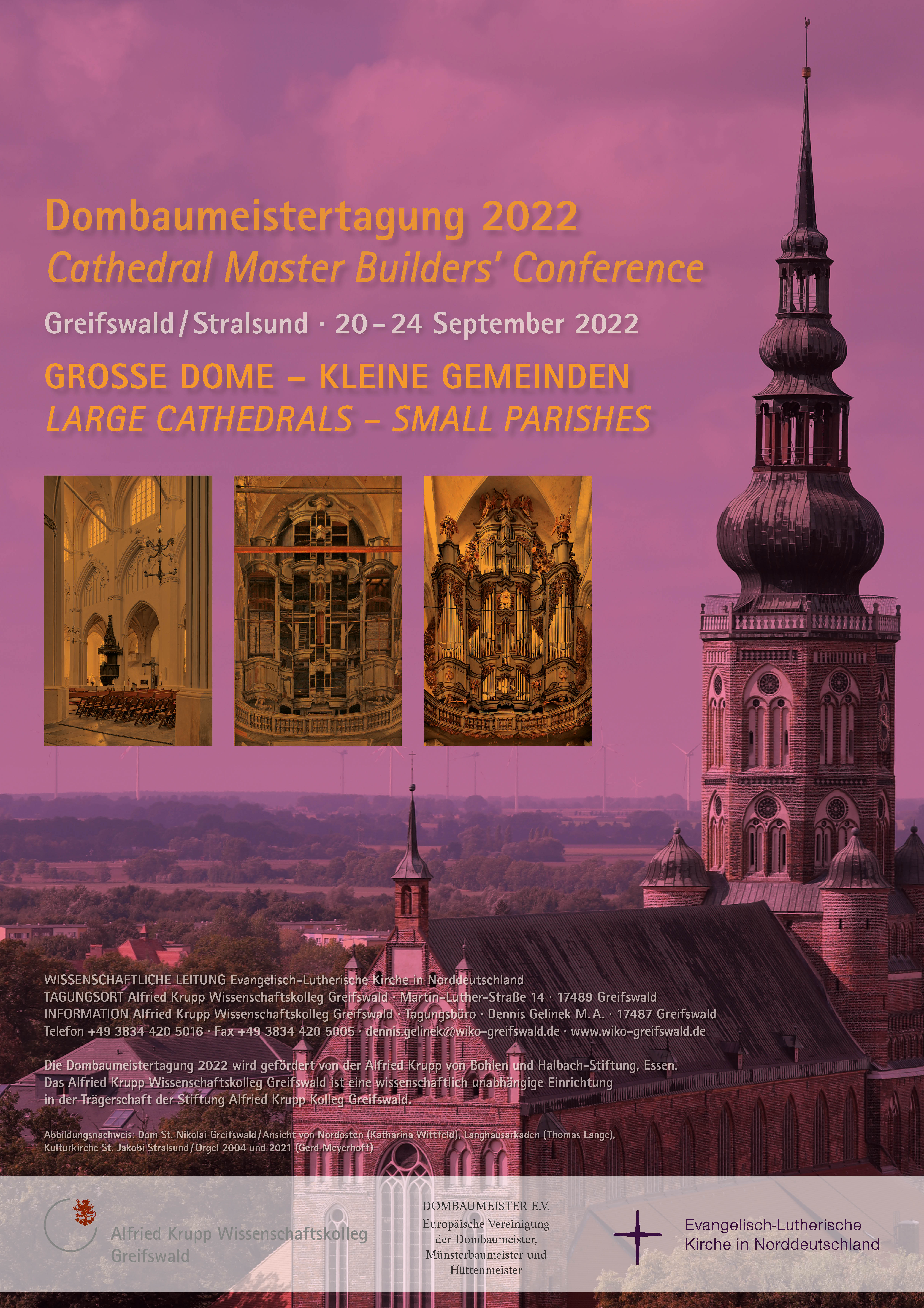 Abbildungsnachweis: Dom St. Nikolai Greifswald / Ansicht von Nordosten (Katharina Wittfeld), Langhausarkaden (Thomas Lange), Kulturkirche St. Jakobi Stralsund / Orgel 2004 und 2021 (Gerd Meyerhoff)